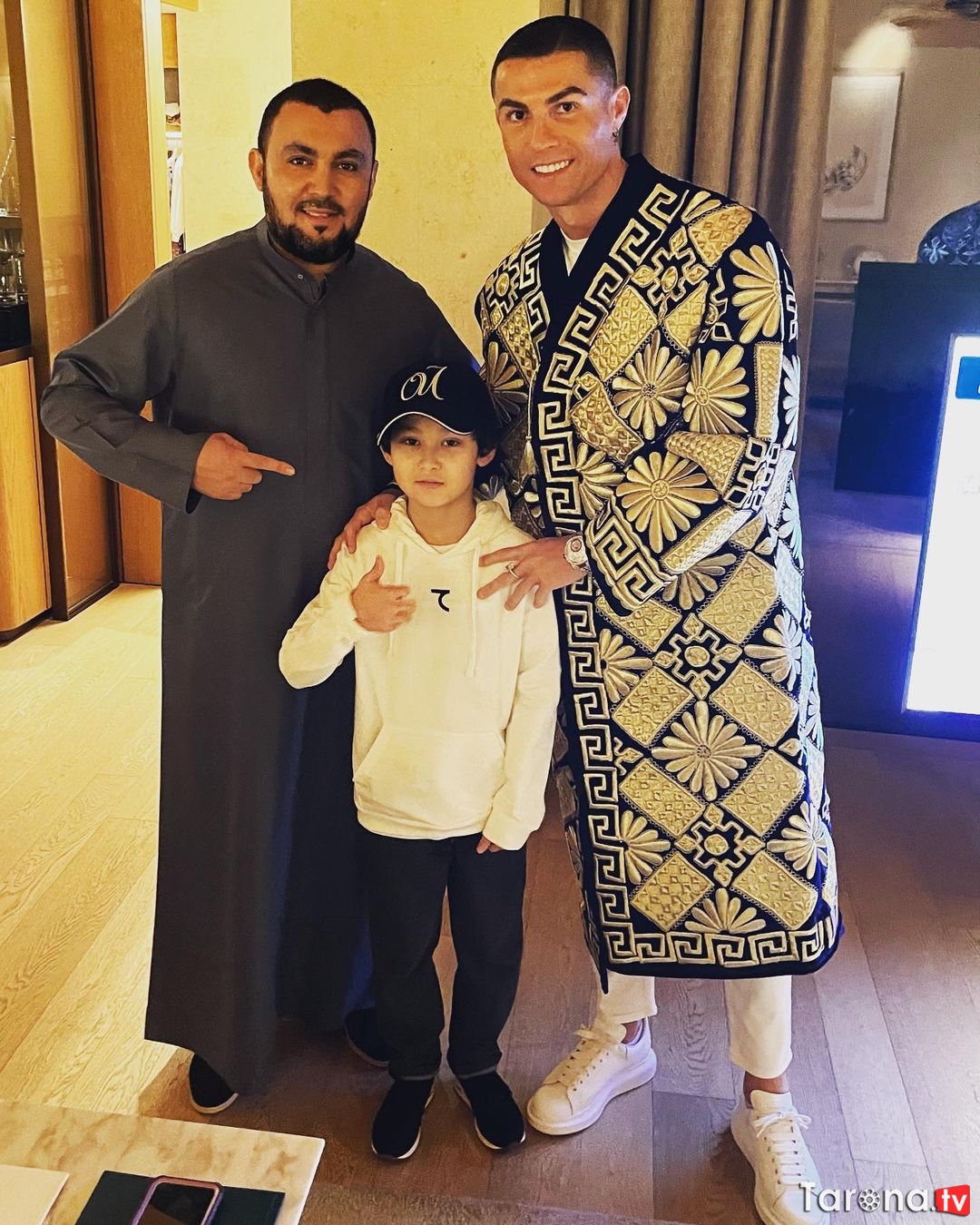 ![]() O‘zbekistonlik sobiq MMA jangchisi, hozirda BAAda istiqomat qilayotgan Umid Mavlonov o‘zining Instagram sahifasida Krishtianu Ronaldu bilan birga tushgan suratini namoyish qildi. Unda portugaliyalik futbolchi o‘zbek choponi kiyib olganini ko‘rish mumkin. Avvalroq Ronalduning qaylig‘i Jorjina Rodriges ham o‘zbekona to‘nda ko‘rinish bergan va bu libos O‘zbekistondan ekanini ma’lum qilgandi. Mavlonov ko‘plab sport yulduzlari, xususan, Habib Nurmagomedov va uning jamoasi, futbolchilardan Karim Benzema va Ronaldu bilan do‘st hisoblanadi. Uning sahifasida o‘zbekistonlik sportchilar va O‘zbekiston Prezidentining kenja kuyovi Otabek Umarov bilan birga tushilgan suratlarni ko‘rish mumkin. Ronaldu ayni damda ta’tilni BAAda o‘tkazmoqda. Uning bu qarori Italiyada ko‘plab muhokamalarga sabab bo‘ldi. Eslatib o‘tamiz, Ronaldu may oyida O‘zbekiston MMA assotsiatsiyasi ramzi tushirilgan libosda tushgan suratini Instagram sahifasiga joylagandi.